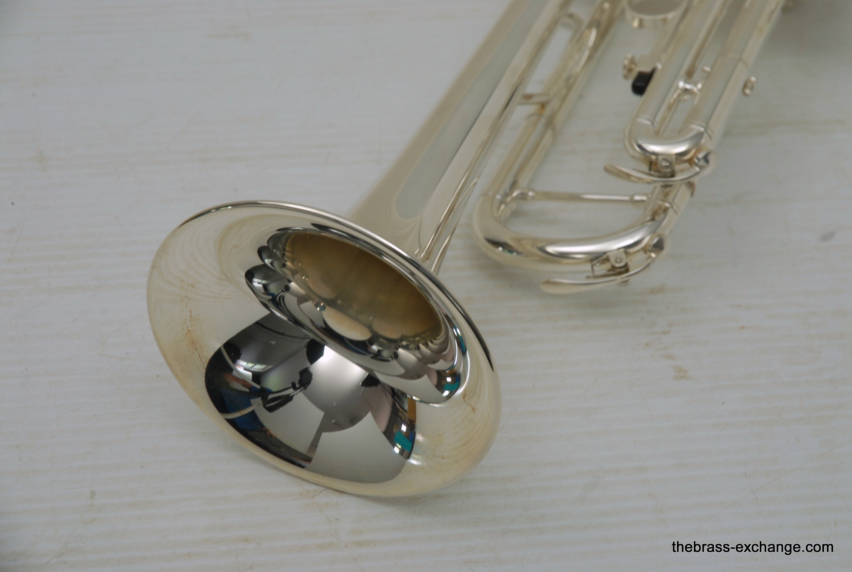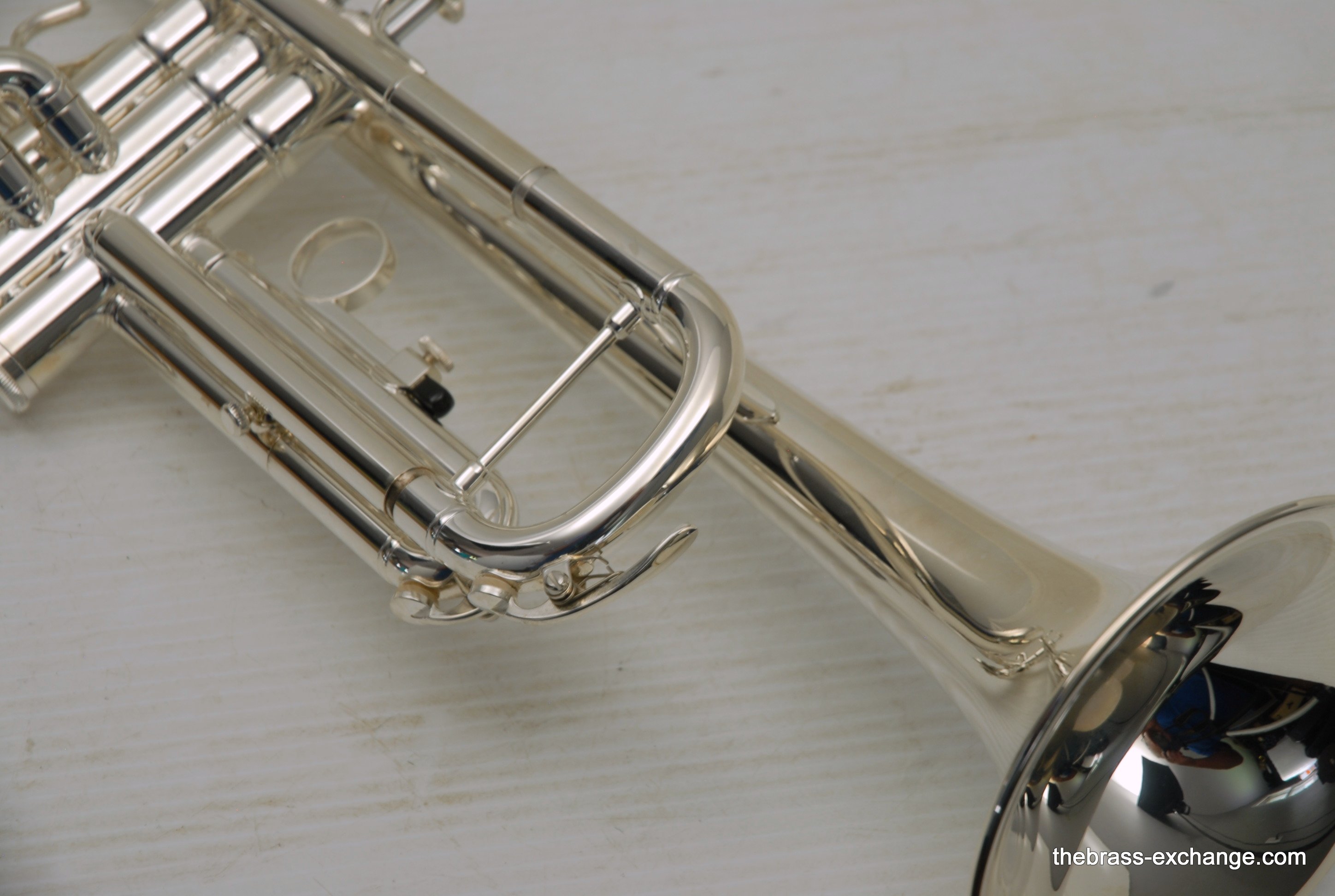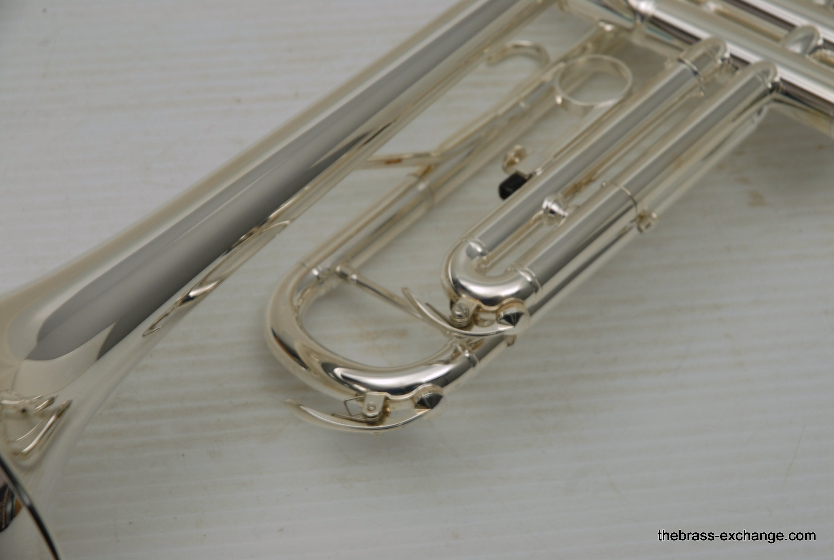This particular example was a single-owner trumpet that came to us in perfect condition. It received a complete shop service, including a chemical bath, replacement of felts and pads, and a full inspection. The horn showed no signs of previous damage or repair.