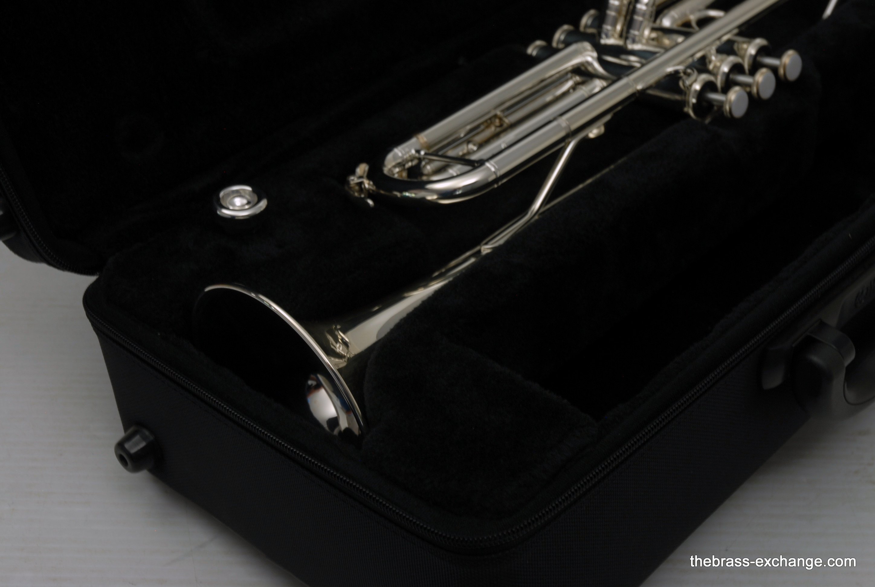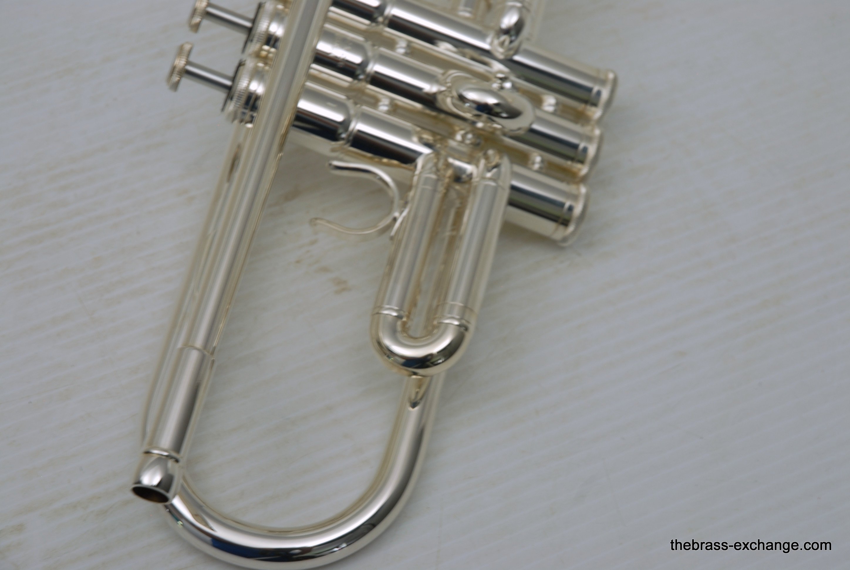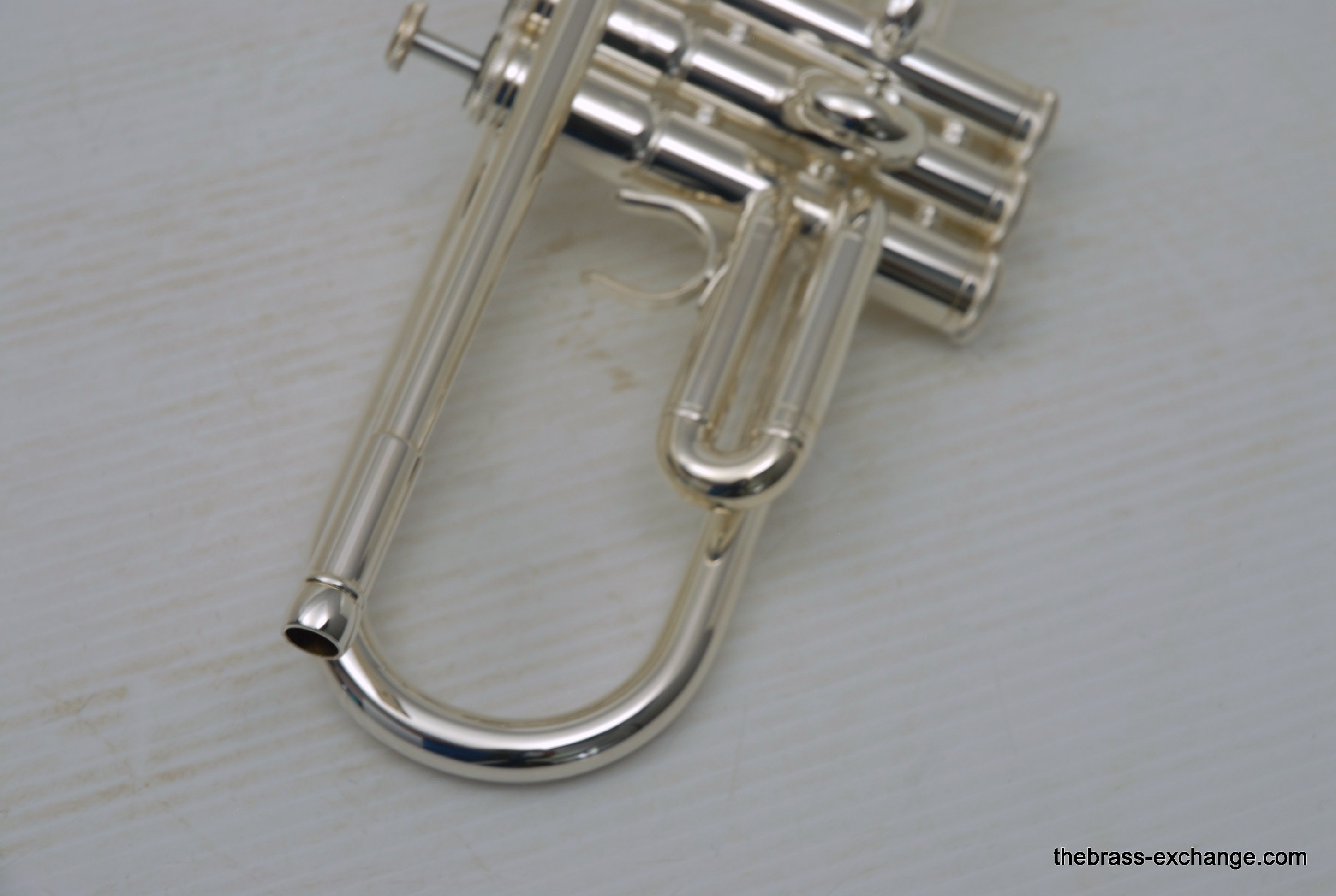 This particular example was a single-owner trumpet that came to us in perfect condition. It received a complete shop service, including a chemical bath, replacement of felts and pads, and a full inspection. The horn showed no signs of previous damage or repair.