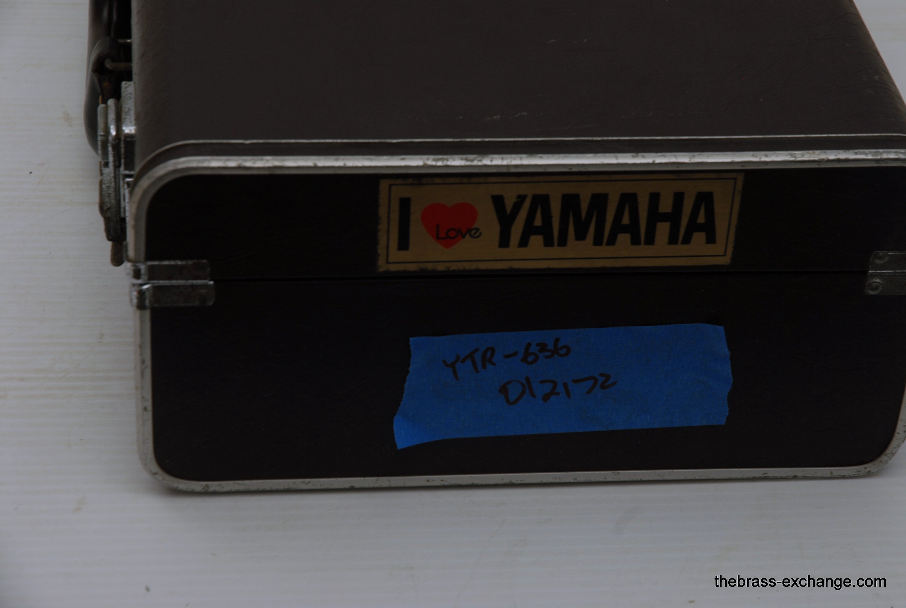 Yamaha YTR-636 Bb Trumpet Super Nice Condition.  Has had full shop service, chemical bath, pads, felts.  This an entry pro-level Yamaha.  At the time of production, the 600 series was the top of the line for Yamaha, prior to the introduction of the 800 series.  This is a single owner horn that has not had any previous damage or repairs.  Valves are perfect, everything on this horn is exactly as it should be.  Lacquer is in very good condition.  Includes case and a gold plated mouthpiece.  This horn plays very warm and easy.  In-stock for immediate delivery.