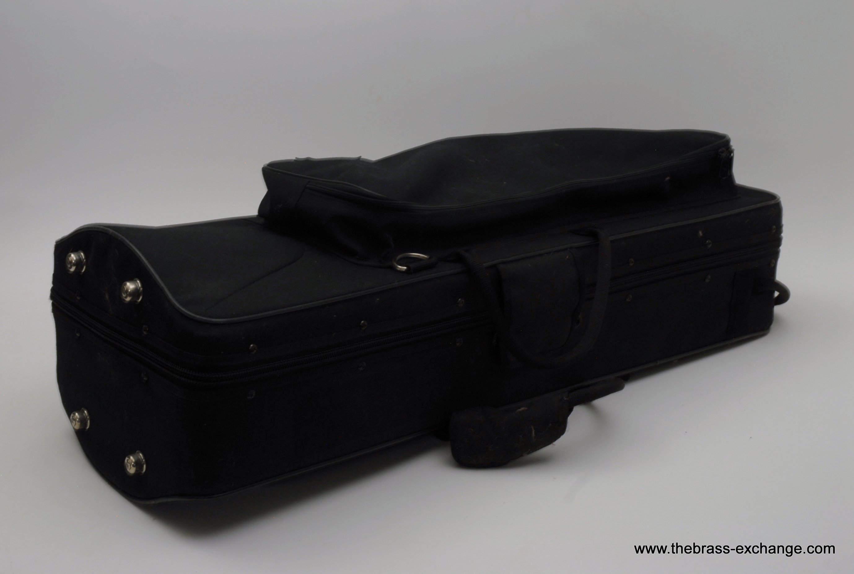 Comes with a mouthpiece and the older Protec hard-shell gig case, fully functional after cleaning and zipper repair.