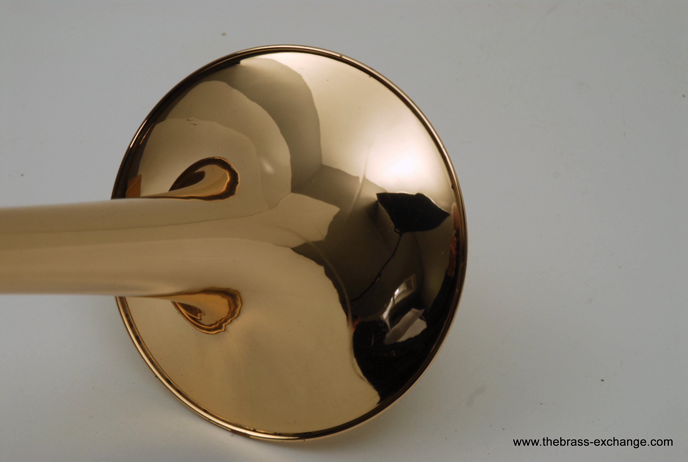 This horn received full professional service in our shop, including a chemical bath, rotor service, water-key refresh, and minor cosmetic cleanup. A prior bell crease was properly repaired; the lacquer remains in good condition with only a small visual mark. Mechanically, it plays beautifully—the slide and valve action are superb, easily offsetting the minor cosmetic history.